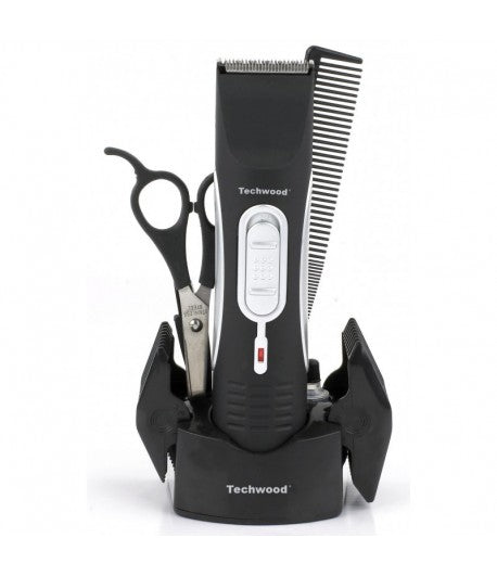 Tondeuse Sans Fil grise Techwood. Longueur de coupe ajustable de 3 à 12mm + Ciseaux – Peigne – Brosse et huile